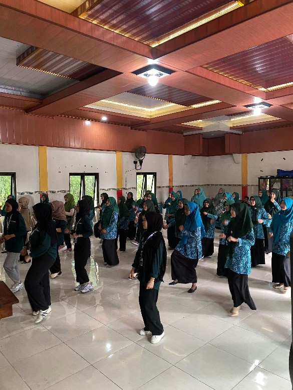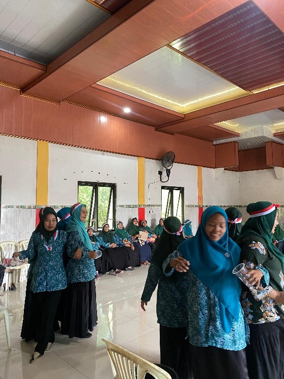 Setelah sesi formal selesai, suasana berubah menjadi lebih meriah dan penuh energi. Mahasiswa KKN 05 ITBADLA memimpin senam bersama yang diikuti antusias oleh para anggota PKK dan masyarakat sekitar. Tawa dan semangat kebersamaan semakin terasa ketika memasuki sesi hiburan berupa pengocokan arisan bulanan, yang memang sudah menjadi tradisi dalam setiap pertemuan PKK.